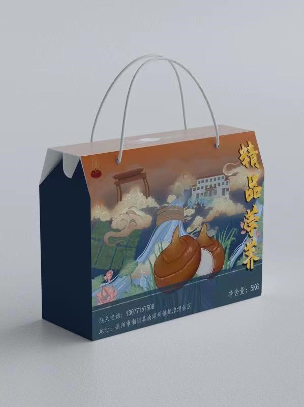 “薪火乡传队”负责人介绍,该包装的设计形式为插画,画面以荸荠、社区服务站,水产基地大门、桥梁等素材为主,还运用了河流、莲花等自然景观元素。表达了在党和政府的带领下,该社区产业链和基础设施逐步完善、不断发展的喜人景象。整幅作品对于推动当地农产品荸荠从自产自销到对外销售,将发挥积极作用。
